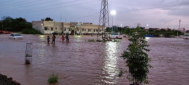 शहादा : शहरासह तालुक्यात झालेल्या अतिवृष्टीमुळे सर्वत्र जलमय परिस्थिती झाली. नदी-नाले तुडुंब भरून वाहिले. शहरातील नवीन वसाहती तसेच इतर काही भागात पाणी भरल्याने जलमय परिस्थिती झाली होती. भेंडवा नाल्याला पूर आल्यामुळे काही काळ शहराबाहेरून जाणारा अंकलेश्वर बऱ्हाणपूर मार्गावरील वाहतूक काही काळ ठप्प झाली होती.वाहनांच्या लांबच लांब रांगा लागल्या होत्या. उपवनसंरक्षक कार्यालयातील अधिकारी, कर्मचाऱ्यांचा वसाहतींमध्ये पाणी शिरल्याने संसारोपयोगी साहित्याचे नुकसान झाले.