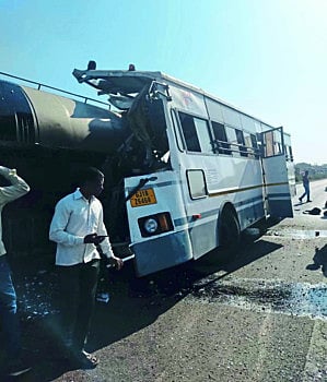 नवापूर: महाराष्ट्र गुजरातच्या सीमेवरील सोनगड शहराजवळील पोखरण गावात गुजरात परिवहन विभागाची बस, क्रूझर आणि टॅंकरच्या अपघातात दहा प्रवाशांचा मृत्यू तर प्रवाशी जखमी झाले.