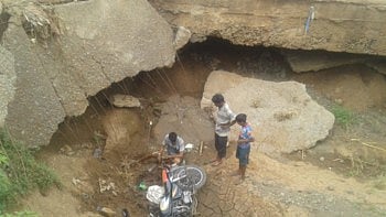 तळोदा (नंदुरबार) : तळोदा येथून किराणा सामान धवळीविहीर गावी घेऊन जाणारा मोटारसायकलस्वार तुटलेल्या पुलावर तोल गेल्याने खाली कोसळल्याची घटना आज घडली. मागे बसलेल्या लहान मुलाला देखील जबर मार लागला आहे. तुटलेला पुल व निकृष्ट कामामुळे वाहून गेलेला भरावामुळेच घटना वारंवार घडत असल्याने धवळीविहीर ग्रामस्थांचे म्हणणे आहे.