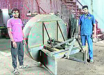 हंसराज राजकुळे या युवकाने आयटीआय केले असून, याआधीही त्यांनी कूपनलिकामधील मोटार काढण्यासाठी मशिन बनविले आहे. त्यांनी हे मशिन तयार करण्यासाठी ट्रॅक्टरच्या ट्रॉलीमधील पत्रा, चार इंच सी चॅनल, पाटा, एक्सेल, पिष्टन इत्यादी साहित्याचा वापर केला आहे. मशिन बनविण्यासाठी त्यांना सात दिवस लागले असून, त्यासाठी त्यांना भूषण सूर्यवंशी, रमेश मगरे, सुरेश पाडवी, लक्ष्मण ड्रायव्हर यांनी मदत केली आहे.