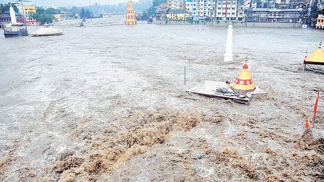 गोदावरीमधील दुतोंड्या मारुतीच्या डोक्यापर्यंत पुराचे पाणी