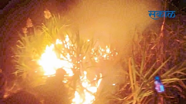 चांदोरी येथील गट क्र. ६४८ सतीश गायखे, माणिक गायखे, संजय गायखे या शेतकऱ्यांचे उसाचे क्षेत्र आहे. शुक्रवारी (ता. ५) सायंकाळी सातच्या सुमारास वीजवाहक तारांमध्ये घर्षण होऊन उसाच्या शेतात ठिणग्या पडल्या. त्यामुळे उसाने पेट घेतला. शिवाय वाऱ्याचे प्रमाणही जास्त असल्याने आग पसरली गेली. शेतकरी व नागरिकांनी धाव घेत आगीवर नियंत्रण आणण्याचा प्रयत्न केल्याने शेजारच्या शेतातील ऊस वाचला. मात्र, गायखे यांच्या उसाचे मोठे नुकसान झाले. चांदोरी येथील अनेक भागात विजेच्या तारा कमी उंचीवर आहेत. त्यामुळे त्या थेट उसाला चिकटतात व घर्षण होऊन ठिणग्या तयार होऊन आगीच्या घटना घडतात. अनेक दिवसांपासून याबाबत मागणी करूनही महावितरण दुर्लक्ष करीत असल्याचे शेतकऱ्यांचे म्हणणे आहे.