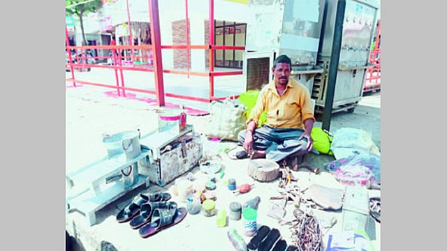 नाशिक : (झोडगे) कोरोनाच्या संकटात सापडलेल्या चप्पल-बूट दुरुस्ती व्यावसायिक आपल्या पारंपरिक व्यवसायत मंदीचे सावट असल्याने चप्पल-बूट दुरुस्तीसोबतच पत्र्याची चूल बनविण्यापासून ते कटलरी साहित्य विक्रीपर्यंत अशा इतर व्यवसायांचा आधार घेत उदरनिर्वाह चालवत असल्याचे चित्र आहे.