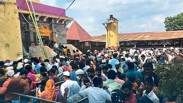 मालेगाव (जि. नाशिक) : बानुबाईच्या चंदनपुरीत दीड वर्षापेक्षा अधिक कालावधीनंतर रविवारी (ता. २१) मल्हारभक्तांनी गर्दी केली होती. लग्नसोहळ्यांना सुरवात झाल्याने विवाह सोहळा असलेल्या कुटुंबियांकडून तळी भरणे, कोटम भरणे आदी धार्मिक कार्यक्रम करण्यात आले. कसमादेसह खानदेशमधील भाविक आले होते. दिवसभरात १० ते १५ हजारावर श्रद्धाळू खंडेरायाच्या चरणी नतमस्तक झाले.