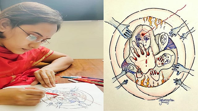 नाशिक : हाथरस सामूहिक बलात्कार प्रकरणाने सगळा देश हादरला आहे. देशाला संतप्त करणाऱ्या, मानवतेला काळीमा फासणाऱ्या हाथरस घटनेचा सर्वत्र निषेध व्यक्त करण्यात येतोय.दुर्दैवी घटनेवर जिल्हा परिषदेच्या महिला व बाल कल्याण समितीच्या कॉंग्रेस पक्षाच्या सभापती, आर्कीटेक्ट अश्विनी आहेर यांनी चित्र काढून आपला निषेध व्यक्त केला आहे.हे चित्र त्यांनी सोशल मिडीयावर व्हायरल केले आहे.