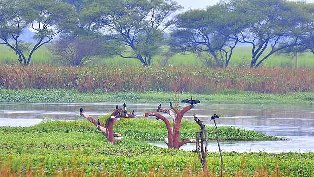 नाशिक : गोदावरी-कडवा नदीच्या संगमावरील धरणाच्या विशाल जलाशयात अर्थात, नांदूरमधमेश्वर पक्षी अभयारण्यात हिवाळी ‘पाहुण्यां‘चे आगमन सुरु झालयं. खाटीक, वेडाराघू, मुनिया, वारकरी, जाकाना, ग्रे हेरॉन, कापशी घार, मार्श हेरीअर, पेंटेड स्टोर्क, गडवाल, हळदी-कुंकू, थापट्या, धनेश, किंगफिशर आदी पक्षांचा किलबिलाट वाढला आहे.