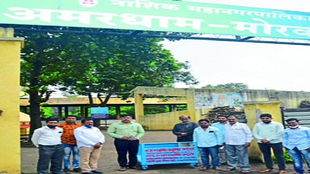 मोरवाडी येथील ३० ते ३२ वर्षांपासून असलेल्या अमरधाममध्ये लाकूड वाहतुकीची काहीही सोय नव्हती. त्यामुळे त्याठिकाणी लाकड वाहून नेण्यासाठी ५०० ते ७०० किलोपर्यंचा वजन वाहून नेणारा लोखंडी चारचाकी हाताने ओढणारा गाडा स्वर्गीय रतनसिंह बाबूसिंह परदेशी यांच्या स्मरणार्थ दिला. रुद्रसिंह परदेशी याने चौथ्या वाढदिवसानिमित्त मुलाने वाढदिवसासाठी साठवलेल्या पैशातून अमरधामला लाकडे वाहून नेण्यासाठी लागणारा हातगाडा भेट दिला. रुद्रसिंह परदेशी याने चौथ्या वाढदिवसानिमित्त वायफळ खर्च न करता ही भेट दिली आहे.विभागीय अधिकारी मयूर पाटील यांच्याकडे हा गाडा सुपूर्द करण्यात आला. अनेक वर्षांपासून स्मशानभूमीत लाकडं वाहून नेण्यासाठी कुठलीही सोय नाही. आता लाकडं वाहून नेण्यासाठी लोखंडी गाडा उपलब्ध झाल्याने, मोरवाडी स्मशानभूमीत सोय झाली. यानंतर उंटवाडी व पंचवटी येथील अमरधामला हातगाडी देणार असल्याचे वडील अक्षय परदेशी यांनी सांगितले.