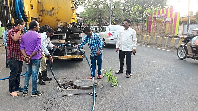 जे तुंबलेले ड्रेनेज साफ करण्यासाठी जवळपास अपुरे होते. चेंबरदेखील हद्दीत अडकल्याने आता ही साफसफाई होइल की नाही याबाबत चर्चा सुरू झाल्या. अखेर माजी नगरसेवक ॲड श्याम बडोदे यांनीदेखील यात लक्ष घातले.