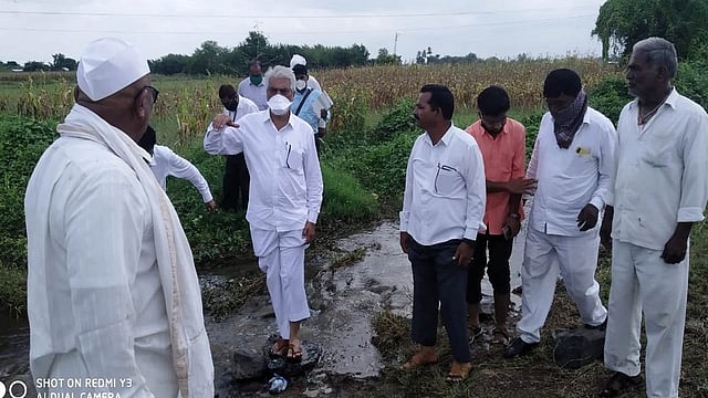 नाशिक : (मालेगाव) तालुक्यातील अतिवृष्टीमुळे नुकसान झालेल्या ऊस पिकाची शुक्रवारी (ता. २५) चिखल, पाणी तुडवत थेट बांधावर जाऊन कृषिमंत्री दादा भुसे यांनी पाहणी केली. आठवड्यातील सततच्या पावसामुळे पिकांचे मोठे नुकसान झाले. सर्वत्र पावसाचे पाणी जमा होऊन झालेल्या पिकांच्या नुकसानीचे तत्काळ पंचनामे करून शासनास प्रस्ताव सादर करावेत, असे निर्देश श्री. भुसे यांनी कृषी अधिकाऱ्यांना दिले.