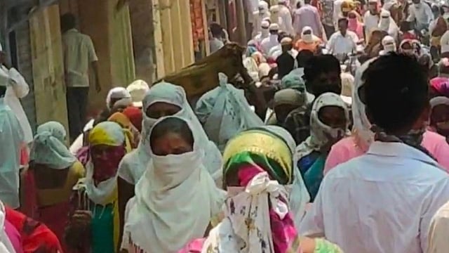 गिरणारे (जि. नाशिक) : गुडीपाडव्याच्या दिवशी आदिवासी भागातून बस्त्यांच्या खरेदीसाठी गिरणारे गावात तोबा गर्दी झाली. भरगच्च गर्दीत अनेकांनी मास्क घातलेला नव्हता. लहान मुले, वयस्कर माणसे, महिलांची मोठी गर्दी सूचना देऊनही आटोक्यात येत नसल्याने अखेर पोलिसांनी ही गर्दी हटवण्यासाठी हस्तक्षेप केल्याने धावपळ उडाली.