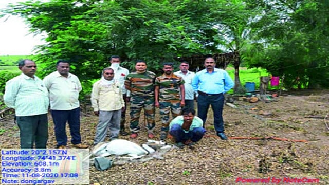 अधूनमधून रात्रीच्या वेळी येथे शिकार होत असल्याच्या चर्चेलाही ग्रामस्थ दुजोरा देतात. मंगळवारी दुपारी चारच्या सुमारास वन विभागाने शिकाऱ्यांना रंगेहाथ पकडले. डोंगरगाव येथे एका खासगी शेतीमध्ये काही जण हरणांची शिकार करणार असल्याची माहिती येथील वनपरिक्षेत्र अधिकारी संजय भंडारी यांना मिळाली होती. त्यानुसार सापळा रचून या ठिकाणी छापा टाकला असता, एका शेतात जाळीच्या सहाय्याने हरणाला पकडून त्याच्या डोक्यामध्ये दगड टाकून निर्घृणपणे शिकार करण्यात आल्याचा प्रकार उघडकीस आला. या प्रकरणी वन विभागाच्या पथकाने मधुकर शिवाजी पवार (रा. बिलवणी, ता. वैजापूर, जि. औरंगाबाद) याला मृत काळविटासह अटक केली आहे. त्याचे पाच साथीदार पळून जाण्यात यशस्वी झाले. भंडारी यांच्यासह वनपाल एम. बी. पवार, वनरक्षक प्रसाद पाटील, गोपाळ हरगावकर, वनसेवक विलास देशमुख आदींनी ही कारवाई केली. त्यांना उपवनसंरक्षक तुषार चव्हाण, सहाय्यक वनसंरक्षक सुजित नेवसे यांचे मार्गदर्शन लाभले.