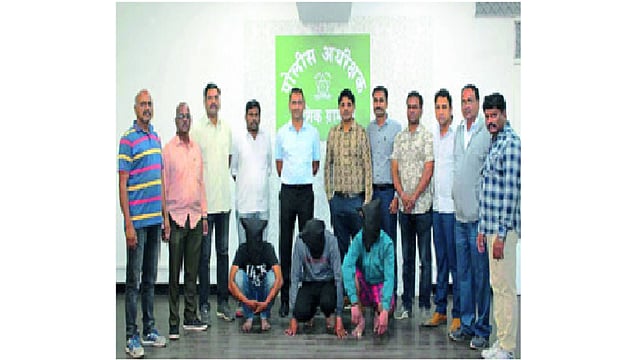 या प्रकरणी तालुका पोलिस ठाण्यात दाखल गुन्ह्यात पोलिसांना कुख्यात संदेश काजळे महाराष्ट्र-गुजरात सीमेवर असल्याची माहिती मिळाली होती. प्राप्त माहितीच्या आधारे पोलिसांनी नवापूर येथे जात नवापूर-सुरत रस्त्यावर मंगळवारी संदेश काजळे (वय 29) त्याच्यासोबत असलेले भूषण राजेंद्र सुर्वे (30, रा. भाईजीनगर, धुळे) व रवींद्र दत्तात्रय सूर्यवंशी (30, रा. नाशिक) या तिघांना ताब्यात घेतले होते.