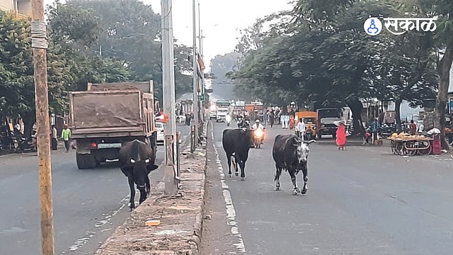 पंचवटी (जि. नाशिक) : पेठ रोड आणि दिंडोरी रोडवर मोकाट जनावरांचा वावर नित्याचाच झालेला आहे. ही जनावरे केवळ रस्त्यात उभीच राहत नाही तर कधीही इकडे- तिकडे धाव घेतात. त्याचा अंदाज रस्त्याने जाणाऱ्या वाहनांना येत नाही. ती वाहनांवर आदळण्याची शक्यता वाढते. अचानक धावून येणाऱ्या वाहनांमुळे दुचाकीस्वार पडून जखमी झाल्याचे प्रकार घडलेले आहेत. रस्त्यावरील या मोकाट जनावरांची समस्येने पादचारीही त्रस्त झालेले आहे. या मोकाट जनावरांची वाहनचालकांसह पादचाऱ्यांनी धास्ती वाटत आहे. या जनावरांवर अंकुश घालण्याची मागणी नागरिकांकडून होत आहे. (Drivers pedestrians suffering due to loose animals Stop at Dindori Road Peth Nashik Latest Marathi News)