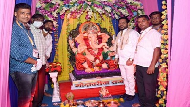 कोरोना संकटामुळे रेल्वे गाड्या बंद असल्याने गोदावरी एक्स्प्रेसमध्ये प्रवास करणाऱ्या सर्वधर्मीय चाकरमान्यांनी कोरोनाचे सावट असले तरी यंदाही अतिशय श्रद्धेने यार्डात उभ्या असलेल्या गोदावरी एक्सप्रेसमध्ये गोदावरीच्या राजाची प्रभारी नगराध्यक्ष राजाभाऊ आहिरे यांच्या हस्ते आरती करत स्थापना झाली. यावेळी मंडळाचे अध्यक्ष नरेंद्र खैरे, मुकेश निकाळे, संदिप व्यवहारे, भूषण पवार, स्वप्निल म्हस्के, मंगेश जगताप, राजू भडके, चेतन मराठे, गोरख खैरे, सुरज चौधरी, शेखर थोरात, धनंजय आव्हाड, ललित धांदल, अमन म्हसदे, अशोक बिहारी, विवेक शेजवळ, विशाल आहिरे, उमेश देसाई, मच्छिन्द्र सांगळे आदींनी परिश्रम घेतले.