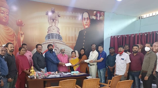 नाशिक रोड : ऑल इंडिया एससी/एसटी रेल्वे एम्प्लॉईज असोसिएशन अतिरिक्त मडंलातर्फे संविधान सन्मानार्थ विद्रोही साहित्य संमेलनाला कर्मचाऱ्यांनी दहा हजारांची मदत दिली. याबाबतचा धनादेश स्वागताध्यक्ष शशिकांत उन्हवणे, किशोर ढमाले यांच्याकडे सुपूर्त केला.