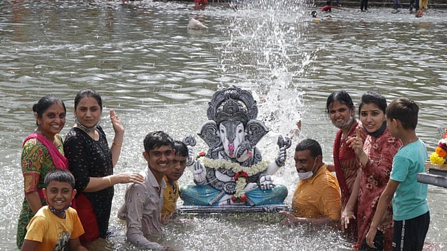 नाशिक : शहरातील रामकुंड, म्हसोबा पटांगण, गौरी पटांगण या भागात गणपती विसर्जनासाठी भाविकांची मोठी गर्दी उसळली. गणपती बाप्पा मोरया, पुढच्या वर्षी लवकर या, च्या जायघोषात लाडक्या बाप्पाला निरोप देण्यात आला.