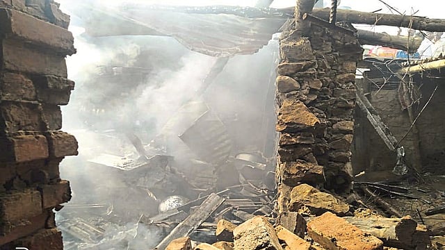 खेडभैरव (जि. नाशिक) : पिंपळगाव मोर येथील गावालगत असलेल्या शेतकऱ्याच्या घरात सिलेंडरचा स्फोट झाला अन् शेतकरी कुटुंबाच्या घर- संसाराची राखरांगोळी झाली... झालेला स्पोठ इतका भीषण होता की घराची कौले देखील उडून पडली.
