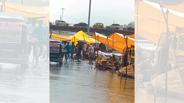 नाशिक : शहरात बुधवारी (ता. २२) अचानक आलेल्या पावसामुळे (Heavy Rain) आठवडेबाजारात ग्राहक, विक्रेत्यांची चांगलीच धांदल उडाली. (Heavy rain water in weekly market nashik monsoon news)