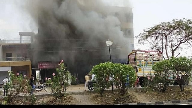 चांदवड (जि.नाशिक) : चांदवडला नव्यानेच सुरू झालेल्या कोविड सेंटर बिल्डिंगला भीषण आग लागली. या आगीत मोठ्या प्रमाणात वित्तहानी झाली असल्याचे समजते. याठिकाणी सेंटरच्या खाली फर्निचरचे भले मोठे गोडावून तसेच येथील रन वे हॉटेल ला देखील या आगीचा विळखा पडला आहे. हे खाजगी कोविड सेंटर असून घटनास्थळी मालेगाव, पिंपळगाव , चांदवड अग्निशमन दलाच्या गाड्या दाखल झाल्या आहेत. या भीषण आगीवर नियंत्रण मिळविण्याचे प्रयत्न सुरू आहे. विशेष म्हणजे या खाजगी कोविड सेंटरचे आजच उदघाटन होते. अशातच ही भीषण आग लागलीय (सविस्तर वृत्त थोड्याच वेळात)