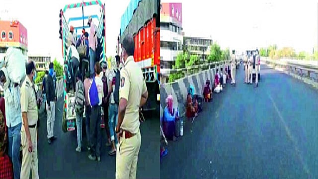 कोरोनाचा प्रादुर्भाव वाढल्याने सहा आठवड्यांपासून राज्यात "लॉकडाउन' सुरू आहे. यामुळे ठिकठिकाणी लाखोंच्या संख्येने परप्रांतीय मजूर अडकून पडले आहेत. ठाणे जिल्ह्यातील मुरबाडमध्ये अडकून असलेल्या शेकडो मजुरांनी कुटुंबीयांसह मुंबई- आग्रा महामार्गाने मध्य प्रदेशच्या दिशेने पायी प्रवास सुरू केला. गुरुवारी दुपारी साडेचार-पाचच्या सुमारास मुरबाडहून निघालेले हे शेकडो परप्रांतीय नाशिक शहरातील महामार्गाच्या उड्डाणपुलावरून जात होते. मुंबई नाका पोलिसांना मोठ्या संख्येने परप्रांतीय महामार्गाने जात असल्याचे कळताच त्यांना उड्डाणपुलावर रोखले. ते मुरबाडहून मध्य प्रदेशकडे जात असल्याचे सांगितले. तसेच, जाण्यासाठी त्यांनी पोलिसांकडे विनंतीही केली. उपायुक्त अमोल तांबे यांनीही घटनास्थळी भेट दिली.