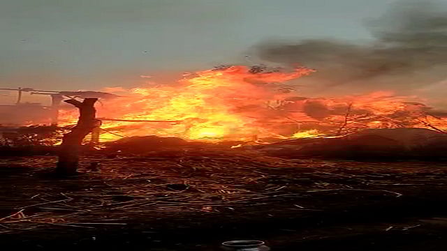 जयपूर (ता. बागलाण) येथे सोमवारी (ता. 1) सायंकाळी शेतकरी रणजित प्रताप सूर्यवंशी यांच्या शेतातील कांदाचाळीवर वीज पडली. त्यामुळे चाळीला आग लागली. आगीत शेकडो क्विंटल कांद्यासह शेतीपयोगी सर्व साहित्य व चाळ खाक झाली. त्यामुळे शेतकऱ्याचे लाखो रुपयांचे नुकसान झाले आहे.