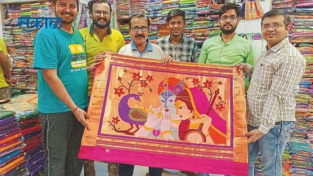 येवला (जि.नाशिक) : देश-विदेशात नावलौकिक असलेल्या येथील पैठणी व साडी व्यवसाय शहराचा अर्थकणा बनला असून, येथील विणकरांनी पैठणीला अस्सल सौंदर्याचे देखणेपण मिळवून दिले आहे. या भरजरी वस्त्रकलेचा एक उत्कृष्ट पारंपरिक प्रकार म्हणजे पैठणी. याच राजवस्त्राला अजून नवे रूप मिळवून देत प्रथमच कृष्ण-मीरा यांची छबी पैठणीवर साकारली आहे.