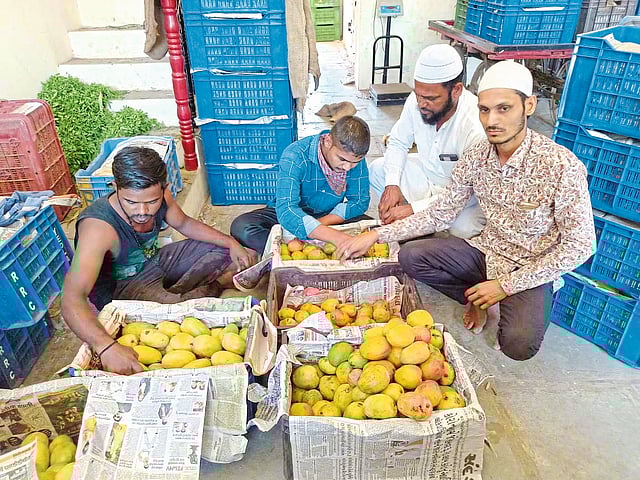 अक्षयतृतीयेचा मुहूर्त, पितृपक्ष आणि रमजानचा महिना सुरू असल्याने विविध प्रकारचा आंब्यांची आवक सुरू आहे. कोरोनामुळे राज्य लॉकडाउन आहे. यामुळे महाराष्ट्रातील हजारो टन हापूस आंब्याची विदेशात निर्यात होऊ शकली नाही. हापूस आंबा रत्नागिरी, देवगड, नाशिक, सांगली अशा विविध जिल्ह्यांत मोठ्या प्रमाणावर उत्पादित होतो. तो आंबा पडून आहे. सध्या गुजरात, कर्नाटक, आंध्र प्रदेश, कर्नाटकातून बदाम, लंगडा, केशर अशा मोजक्या वाणाची आंबे बाजारात विक्रीस उपलब्ध आहेत. हे आंबे परराज्यातून येत असल्याने ग्राहक आंबे खरेदीसाठी धजावत नाहीत. कोरोनाचा प्रादुर्भाव वाढत असल्याने बाजारातील आंबे खाण्यावर बहुतेक ग्राहकांची इच्छा नसली तरी सणामुळे ग्राहक आंब्याकडे आकर्षित होत आहेत.