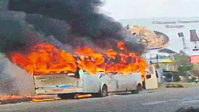 मुंबई- नाशिक महामार्गावरील थरार! धावत्या लक्झरी बसला अचानक आग