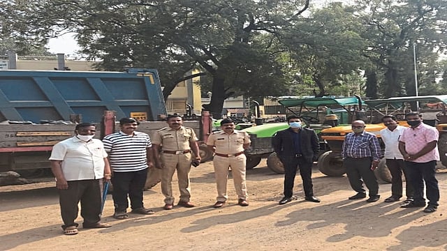 प्रांताधिकारी विजयकुमार भांगरे, प्रभारी तहसीलदार शुभम गुप्ता यांच्या मार्गदर्शनाखाली पथकाची नेमणूक करण्यात आली होती. बुधवारी (ता. ७) महसूल पथक गस्तीवर असताना अजमीर सौंदाणे रस्त्याला दुधमाळजवळ वनविभागाच्या गट नंबर. ७२८ मध्ये सहा ट्रॅक्टर अवैधरीत्या दगड वाहतूक करताना आढळले. ट्रॅक्टर चालककडे पथकाने चौकशी केली असता त्याच्याकडे वाहतूक परवाना नव्हता. हे दगड पारस पाटील यांच्या चौगाव शिवारातील स्टोन क्रशरवर नेण्यास सांगितल्याचे चालकाने सांगितले. पथकाने सहा ट्रॅक्टरांना सटाणा तहसीलच्या आवारात जप्त करून त्यांच्यावर कारवाई केली. या कारवाईत मंडळ अधिकारी भाऊसाहेब मेधने, भाऊसाहेब खरे, तलाठी मनोज भामरे, श्री. भालेराव, सटाणा येथील पोलिस निरीक्षक नंदकुमार गायकवाड, सहाय्यक निरीक्षक देवेंद्र शिंदे सहभागी झाले होते.