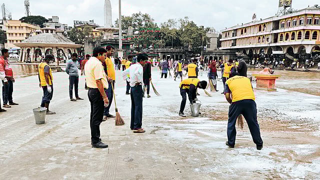 या परिसरात सकाळी श्राद्धविधीसाठी बाहेरगावाहून येणाऱ्या भाविकांची संख्या मोठी असते. त्यांना या परिसराची माहिती नसल्याने या फरशांवरून घसरून पडण्याचे प्रकार घडत होते. या परिसरात सुरू झालेली घसरगुंडी बघून पंचवटी विभागीय अधिकारी कैलास राभडिया, विभागीय स्वच्छता निरीक्षक संजय दराडे यांनी तत्काळ वॉटरग्रेस प्रोडक्टच्या ४५ कर्मचाऱ्यांमार्फत या परिसरात ब्लिचिंग पावडर टाकून दगडावर साचलेले शेवाळ काढले.