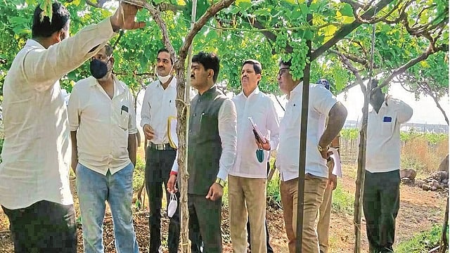द्राक्ष बागायतदार रवींद्र बोऱ्हाडे यांच्या बागेसाठी प्रधानमंत्री कृषी सिंचाई योजनेंतर्गत ठिबक संच अनुदान वितरित झाल्याने खासदार गोडसे यांनी या योजनेची पाहणी केली. शेतातील अत्याधुनिक स्वयंचलित ठिबक आणि खत व्यवस्थापन प्रणालीविषयी त्यांनी जाणून घेतले. महेश वाजे यांच्या शेतातील एकात्मिक फलोत्पादन विकास अभियानांतर्गत अनुदानित पॉलिहाउसची या वेळी पाहणी केली. राष्ट्रीय शाश्वत शेती अभियानाच्या कृषि यांत्रिकीकरण उपअभियानांतर्गत चंदन तुपे, लताबाई पवार, सखाराम कवटे यांना रोटाव्हेटर आणि ट्रॅक्टरसाठी अनुदान वितरित केले आहे. या यंत्रांची खासदार गोडसे यांनी पाहणी केली. केंद्राच्या व राज्य सरकारच्या कृषी अनुदान योजनांचा लाभ मिळण्यासाठी येणाऱ्या अडचणींबद्दल त्यांनी जाणून घेतले.
