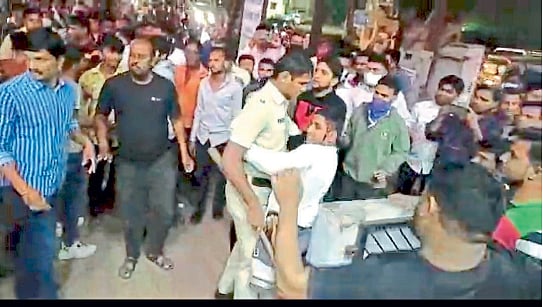 दगडफेकीत मेडिकल दुकानाच्या काचा फुटून नुकसान झाले. या वेळी सैन्य दलातील सेवानिवृत्त ज्येष्ठ नागरिक सयाजी साळुंखे यांनी संशयित गांगुर्डे याला पकडण्याचा प्रयत्न करत असताना त्याने त्यांच्यावर वार करत जखमी केले. जमलेल्या संतप्त जमावाने पोलिसांच्या तावडीत असलेल्या गांगुर्डेला चांगलाच चोप दिला. विशेष पोलिस बीट मार्शल असताना धाक न बाळगता संशयित गांगुर्डे याने जमावाला शिवीगाळ करत दहशत निर्माण करण्याचा प्रयत्न केला. याप्रकरणी अंबड पोलिस ठाण्यात गुन्हा दाखल करण्यात आला आहे.