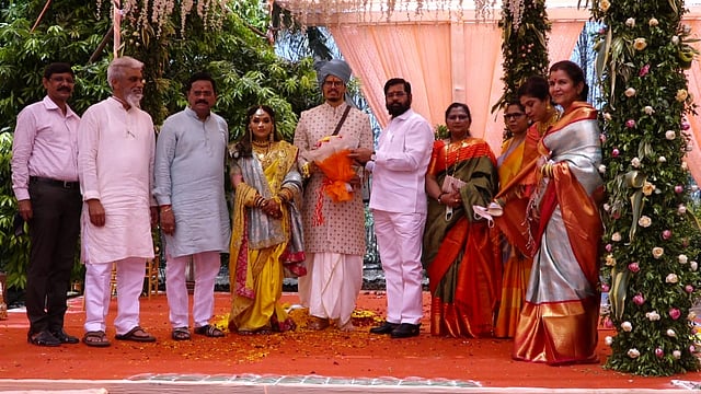 मालेगाव (जि. नाशिक) : राज्याचे कृषीमंत्री दादा भुसे यांचे चिरंजीव आविष्कार व खासदार राजन विचारे यांची कन्या लतिशा यांचा विवाह आज सकाळी येथील मनमाड चौफुलीवरील आनंद फार्म येथे अत्यंत साध्या पध्दतीने अवघ्या वीस ते पंचवीस जणांच्या उपस्थितीत पार पडला.