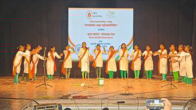 नाशिक : स्वातंत्र्याचा अमृत महोत्सव व स्वच्छ सर्वेक्षणांतर्गत महापालिकेकडून विद्यार्थ्यांसाठी आयोजित करण्यात आलेल्या पथनाट्य व नृत्य स्पर्धेत शालेय विद्यार्थ्यांनी विविध कला सादर करत स्वच्छता, नदीप्रदूषण व प्लॅस्टिक बंदी संदर्भात जनजागृती करत उपस्थितांची दाद मिळविली. (NMC Competition on azadi ka amrit mahotsav Cleanliness through street play awareness of plastic ban Nashik News)