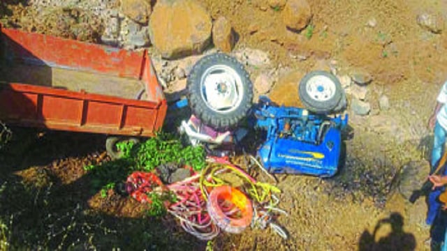नांदगाव (जि.नाशिक) : तालुक्यातील माणिकपुंजजवळील गणेशनगर येथे शेतातील नाल्यात ट्रॅक्टरसह ट्रॉली उलटून एक ठार, तर दोघे गंभीर जखमी झाले. विष्णू रामभाऊ मेंगाळ यांनी पोलिसांत फिर्याद दाखल केली. काय घडले नेमके?