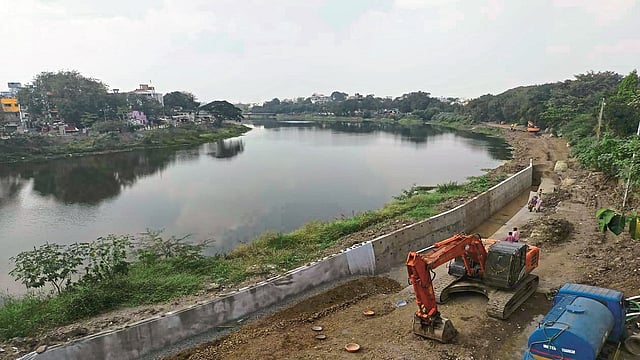एकीकडे नदीपात्रातील सिमेंट काँक्रिट उखडत असताना दुसरीकडे न्यायालय व जलसंपदा विभागाने निळ्या व लाल पूररेषेत कुठल्याही प्रकारचे बांधकाम न करण्याचे आदेशित केले आहे. परंतु तरीही स्मार्टसिटी कंपनीच्या वतीने अहिल्यादेवी होळकर पुलाजवळ काँक्रिटची भिंत उभारली जात आहे. नदीकिनारी गॅबियन तंत्रज्ञानाचा वापर करून भिंत बांधण्यास परवानगी देण्यात आली आहे. तसे न करता सिमेंटची भिंत उभारली जात असल्याने पर्यावरणाचा ऱ्हास होण्यास कारणीभूत ठरेल, अशी तक्रार गोदावरी गटारीकरण विरोध मंचाचे निशिकांत पगारे यांनी विभागीय महसूल आयुक्त राधाकृष्ण गमे यांच्याकडे निवेदनाद्वारे केली आहे.