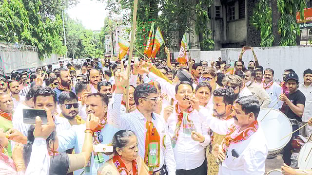 नाशिक : नाट्यमय घडामोडींनंतर राज्यसभेच्या निवडणुकीत (Rajya Sabha Elections) भाजपने (BJP) महाविकास आघाडीवर (Maha Vikas Aghadi) मात करत आपला तिसरा उमेदवार धनंजय महाडीक (Dhananjay Mahadik) यांना निवडून आणले. भाजपने महाविकास आघाडीला धोबीपछाड देत विजयश्री मिळविल्याने पक्षाच्या शहर कार्यालयातर्फे पदाधिकारी, कार्यकर्त्यांनी ठेका धरत जल्लोष साजरा केला. या वेळी एकमेकांना पेढे भरवून आनंद साजरा करण्यात आला. यावेळी फटाक्यांची जोरदार आतषबाजीही करण्यात आली. (Rajya Sabha Election 2022 BJP Mahavikas Aghadi Nashik News)