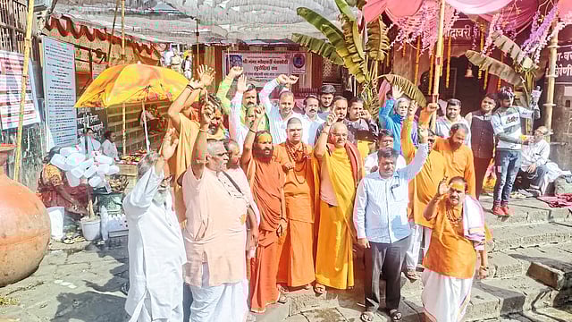 या वेळी त्र्यंबकेश्वर येथील जुना आखाड्याचे महंत हर्षदभारती, महंत सुधीरदास पुजारी, अनिकेतशास्त्री देशपांडे, गंगा गोदावरी पुरोहित संघाचे अध्यक्ष सतीश शुक्ल, काळाराम मंदिर विश्वस्त धनंजय पुजारी, हिंदू एकता आंदोलनाचे रामसिंग बावरी, लव जिहाद संघर्ष समितीचे राज्य अध्यक्ष गजू घोडके आदी उपस्थित होते.