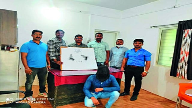 या पथकाने त्याच्या ताब्यातून गावठी बनावटीची दोन पिस्तुले, तीन जिवंत काडतुसे, तसेच पल्सर दुचाकी (एमएच १८, बीक्यू ७४१०) जप्त केली. गावठी पिस्तूल व दुचाकीसह सुमारे ९१ हजार ५०० रुपयांचा हा ऐवज आहे. हिफजूविरुद्ध पवारवाडी पोलिस ठाण्यात गुन्हा दाखल झाला आहे. हिफजूने गुन्हा करण्याच्या हेतूने हे गावठी पिस्तूल आणल्याचे समजते. रविवारी पहाटे पवारवाडी पोलिसांनीही इब्राहिम अहमद अब्दुल गणी ऊर्फ दुर्री या सराईत गुन्हेगाराला अटक करून त्याच्या ताब्यातून गावठी बंदूक व एक जिवंत काडतूस जप्त केले होते. दुर्रीने विक्री करण्याच्या उद्देशाने कट्टा बाळगला होता. दोन दिवसांत शहरात तीन गावठी बंदुका जप्त झाल्या आहेत.