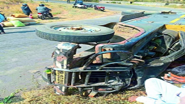 अधिक माहितीनुसार, इगतपुरीकडून आंबेवाडीमार्गे राजूरकडे प्रवासी घेऊन जाणारी काळी-पिवळी जीप (एमएच 15, ए 2212) खडकेद, मांजरगाव शिवारातील वळणावर असताना चालक लक्ष्मण नागरे (घोटी) याचे वाहनावरील नियंत्रण सुटले. त्यामुळे वळणावर जीप जागीच उलटी झाली. या अपघातात जीपमधील प्रवासी प्रभाबाई अंबादास बागुले (वय 70, रा. अंबरनाथ, ठाणे) यांच्या डोक्यास गंभीर मार लागल्याने त्या जागीच ठार झाल्या. तर ताराबाई कुंदे, गंगूबाई घारे, सुमनबाई घारे (सर्व रा. काळुस्ते), रवी शिंदे (घोटी), विठ्ठल कवटे (मवेशी, ता. अकोले), सखूबाई सदगीर (टाकेहर्ष), ताराबाई सदगीर (रा. वाडा), कुसुम झडे (भंडारदरा), नामदेव झडे (भंडारदरा), पूनम बोंदर (अंबरनाथ) जखमी झाले. जखमींना घोटी ग्रामीण रुग्णालयात दाखल करण्यात आले.