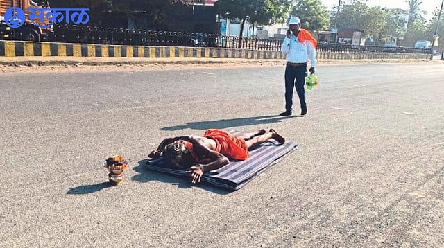 Nandurbar News : अध्यात्माला दुर्दम्य इच्छाशक्ती व मानसिक कणखरपणाची साथ लाभली तर असाध्य गोष्टही साध्य होऊ शकते आणि त्याचाच प्रत्यय नर्मदा परिक्रमा करणाऱ्या एका भाविकाकडे पाहून येत आहे. (Swami Giri Maharaj has set out to complete Narmada Parikrama by bowing down nandurbar news)