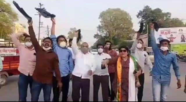 महाराष्ट्र प्रदेश किसान कॉंग्रेसने सर्वत्र गाव तेथे आंदोलन अभियानाला सुरुवात केली आहे. शनिवारी, ३१ ऑक्टोबरला गावागावांत मशाल आंदोलन केले जात आहे. त्याचाच एक भाग म्हणून यवतमाळ येथेदेखील मशाल रॅली आयोजित करण्यात आली आहे. या कार्यक्रमात सहभागी होण्यासाठी येत असताना येथील तहसील चौकात भाजपच्या पदाधिकाऱ्यांनी काळे झेंडे दाखविले.
