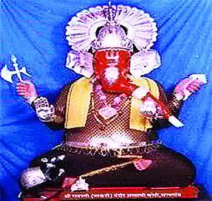 ही मूर्ती अनंत चतुर्दशीच्या दिवशी विसर्जित करण्यात येणार आहे. या मंदिरातील गणपतीची मूर्ती ही जवळपास सहा फुट उंचीची आहे. सुमारे १५० वर्षापूर्वी अय्या (स्वयंपाकी) या लोकांनी लाकडी गणपतीची स्थापना केली होती. ही संपूर्ण मुर्ती लाकडापासून तयार केली आहे. गणेशोत्सव काळात या मंदिर परिसरात भाविकांची गर्दी दिसून येते. नवसाला पावणारा हा गणपती असल्याने राज्याच्या कानाकोपऱ्यातून भक्त मिळेल त्या वाहनाने या मंदीरात येतात. परंतु, मागील दोन वर्षापासून या मंदिरात दर्शनासाठी बाहेरगावाहून येणाऱ्या भक्तांची संख्या कमी झाली आहे.