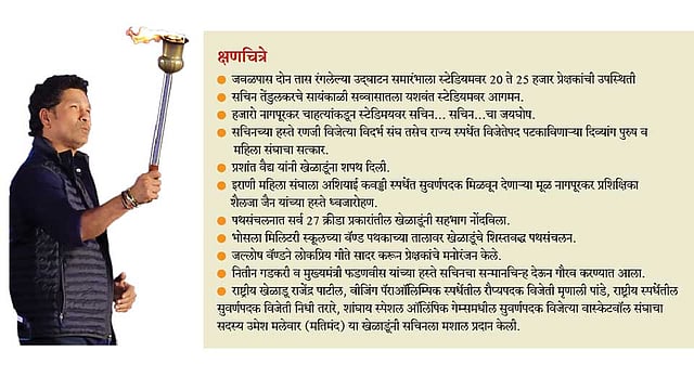 राष्ट्रीय खेळाडू राजेंद्र पाटील, बीजिंग पॅराऑलिम्पिक स्पर्धेतील रौप्यपदक विजेती मृणाली पांडे, राष्ट्रीय स्पर्धेतील सुवर्णपदक विजेती निधी तरारे, शांघाय स्पेशल ऑलिंपिक गेम्समधील सुवर्णपदक विजेत्या बास्केटबॉल संघाचा सदस्य उमेश मलेवार (मतिमंद) या खेळाडूंनी सचिनला मशाल प्रदान केली.