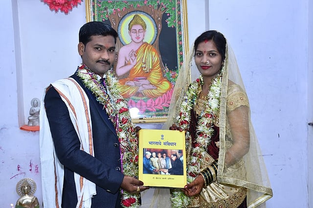असाच एक लग्न सोहळा घनबहादुर परिवाराने वाढत्या कोरोना वायरसचे गांभीर्य लक्षात ठेवून सोशल डिस्टन्सिंगचे काटेकोर पालन करत भारतीय संविधानाला साक्षी मानून वर-वधू ने पार पाडला. संविधानाला साक्षी मानून पार पडलेला विवाह सध्या कौतुकाचा विषय ठरत आहे. अकोट येथील रहिवासी सुरेश म.घनबहादूर यांचे चिरंजीव प्रवीण घनबहादुर व भोपापूर ता. अचलपूर येथील रहिवासी देविदास व. वानखडे यांच्यी कन्या कंचन वानखडे यांचा विवाह दोन महिन्यापूर्वी ठरला होता. यात विवाहासाठी पत्रिका, मंगलकार्यालय सर्व निश्चित झाले असताना गेल्या दोन महिन्यांपासून लॉकडाउन सुरू असल्याने या दोन्ही कुटुंबात समन्वय होऊन लग्न सोहळा घरातील मोजक्याच लोकांच्या उपस्थितीत करण्याचे ठरविल्या गेले. या दोन्ही परिवाराने समाजाला एक वेगळा आदर्श देऊन संविधानाला साक्षी मानत सोशल डिस्टन्सिंगचे पालन करून लग्न विधी पार पाडला. हा विवाह कमी खर्चात आणि लॉकडाउनचे पालन करून अचलपूर तहसीलदारांच्या अनुमतीने फक्त 5 वऱ्हाडी सोबत नेत, मंगल सोहळा पार पाडला. या विवाहामुळे समाजात नवीन आदर्श निर्माण झाला आहे.