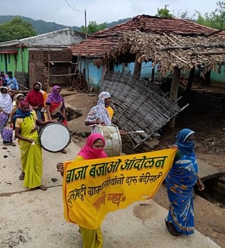धानोरा (जि. गडचिरोली) : दारूमुळे संसार उद्धवस्त होतात. पुरुष जरी दारू पित असले तरी त्याचा त्रास महिलांना होतो. म्हणून महिलांनीच दारूबंदीचे आंदोलन हाती घेतले तर त्याचे चांगले परिणाम दिसून येतात. गडचिरोली जिल्ह्यात अशीच घटना घडली. कुलभट्टी येथील दारूविक्री बंद व्हावी, यासाठी तालुक्यातील मुरूमगाव आणि हिरंगे येथील महिलांनी या गावी जात "दारू सोड, नाहीतर वाजवू ढोल' अशी तंबी देत अनोखे बाजा बजाओ आंदोलन केले. या आंदोलनात तीनही गावांतील जवळपास 60 महिला व पुरुष सहभागी झाले होते.