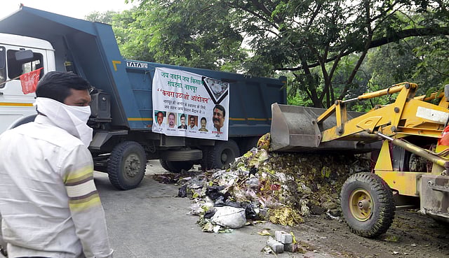नागपूर : घरांमध्ये कचरा साठवून ठेवण्याची नागरिकांची सहनशीलता आता संपुष्टात आली असून कचरा रस्त्यांवर टाकला जात आहे. पाच दिवसांनंतरही अनेक भागात कचरा संकलनासाठी कचरागाडी न पोहोचल्याने नागरिकांत संताप व्यक्त केला जात आहे. राष्ट्रवादी कॉंग्रेस व जय जवान, जय किसान संघटनेने आज कचऱ्याने भरलेल्या ट्रकसह महापालिकेवर धडक दिली. राष्ट्रवादी कॉंग्रेसचे गटनेते दुनेश्वर पेठे व जय जवान, जय किसान संघटनेचे प्रशांत पवार यांनी दोन दिवसांत शहर कचरामुक्त न झाल्यास महापालिकेसमोर कचरा टाकण्याचा इशारा आयुक्तांना दिला.