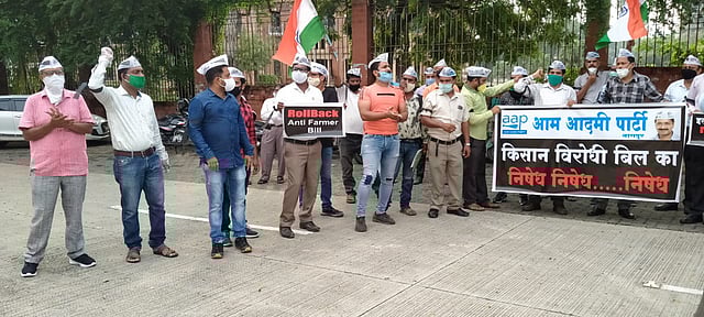 केंद्र सरकारने एकूण तीन बिले पारित केली आहेत. यामध्ये शेतकऱ्यांच्या शेतीमालाला बाजार समितीच्या बाहेर विकण्याची मुभा दिली. परंतु शेतकऱ्याला मिळणाऱ्या हमीभावाबाबत कोणताच उल्लेख केला गेलेला नाही. यामुळे शेतकऱ्यांच्या शेतीमालाचे दर खाजगी कंपन्यांना ठरवता येणार असून, आधारभूत किमतीची कोणतीही शाश्वती या कायद्यामध्ये दिली गेलेली नाही. विरोधकांनी याबाबत संसदेत प्रश्न विचारून मसुद्यात बदल करण्याची मागणी देखील केंद्र सरकारने धुडकावून लावल्याचा आरोप आपने केला.