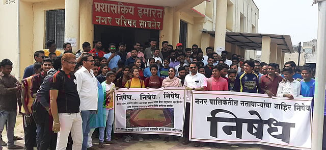 सावनेर (जि.नागपूर) ) : युवक- युवतींच्या खेळासाठी अनेक वर्षांपासून वापरात असलेली पालिकेची आरक्षित जागा येथील क्रीडासंकुलाला देण्यात यावी, या मागणीला नगरपालिकेने स्पष्ट नकार दिल्याने क्रीडाप्रेमींमध्ये आक्रोश भडकला. आम्ही क्रीडाक्षेत्रात करिअर घडवायचे नाही का, या प्रश्नाचा जाब विचारण्यासाठी येथील क्रीडाप्रेमी, क्रीडा संघटना व सामाजिक संघटनेच्या संयुक्त सहकार्याने नगरपालिकेविरोधात आंदोलन करण्यात आले.