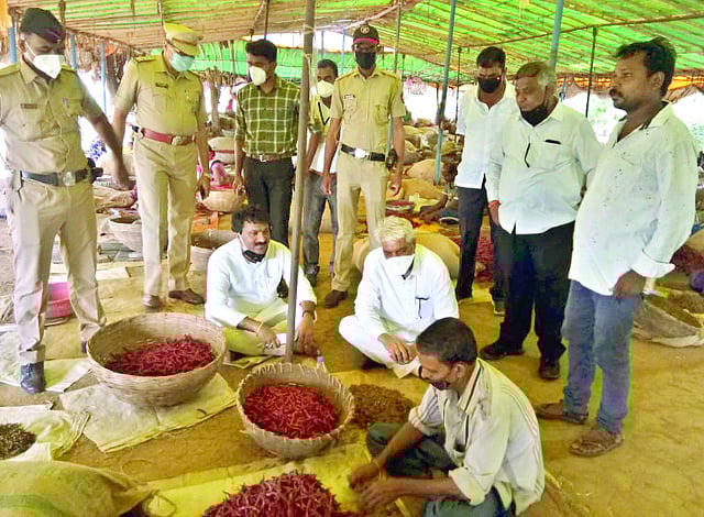 भिवापूर (जि.नागपूर) : या भागातील हजारो मजुर कुटुंबांना वर्षभर रोजगार उपलब्ध करून देणाऱ्या येथील मिरची कटाई केंद्रांना राज्याचे कृषिमंत्री दादाजी भुसे यांनी शनिवारी अचानक भेट दिली. आमदार राजू पारवे त्यांच्यासोबत होते. कटाई केंद्रांवर काम करणाऱ्या मजुरांसोबत संवाद साधत त्यांच्या समस्या व अडचणी यावेळी कृषिमंत्री भुसे यांनी जाणून घेतल्या.